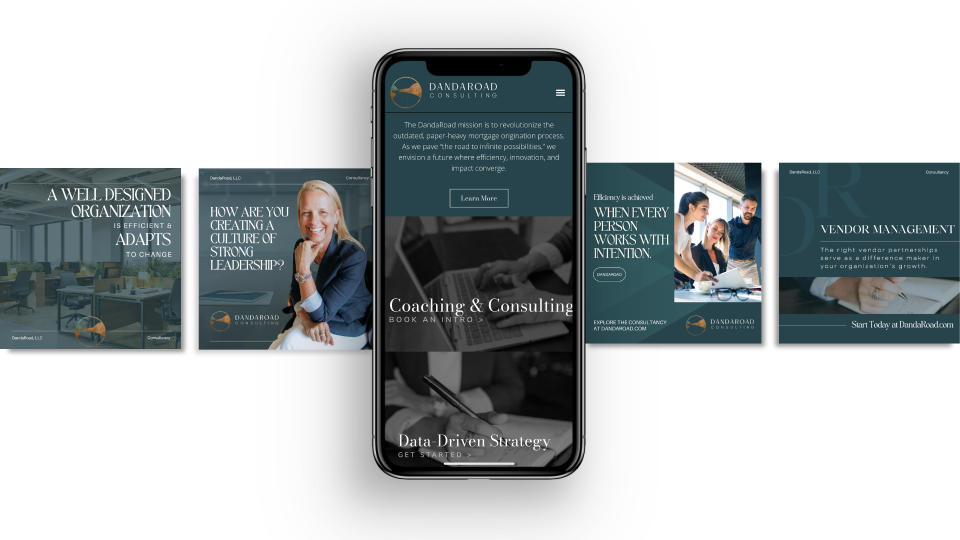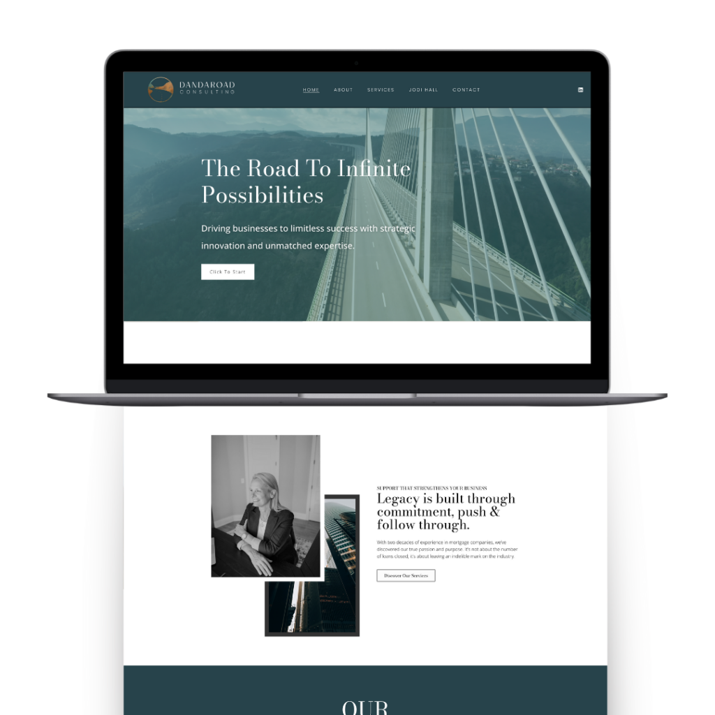Website & Visual Identity A key focus was developing a website that amplified Jodi Hall's leadership and Dandaroad's expertise. The redesigned logo and cohesive visual identity symbolized the brand's commitment to excellence, growth, and innovation.